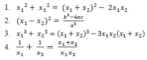 x1 + x2 =-b/a dan x1.x2 = c/a