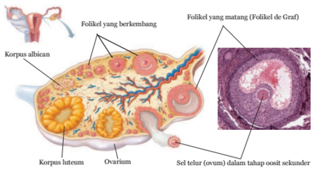 OogenesisOogenesis merupakan proses pembentukan sel kelamin perempuan yaitu sel telur atau ovum dan terjadi di dalam organ yang disebut ovarium. Tahukah kamu, pada saat baru lahir, anak perempuan sudah memiliki bakal sel ovum (sel primordial) sebanyak 200.000 hingga 2.000.000, namun hanya sekitar 40.000 yang tersisa saat anak perempuan puber dan hanya 400 yang akan matang atau berkembang sempurna.